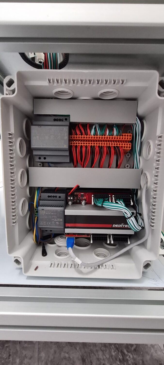 Le boîtier de connexion basse tension abrite les éclairages de la chambre et les contrôles des interrupteurs d’alimentation. Une interface contrôlée, connectée au réseau, gère les contrôles des interrupteurs d’alimentation (contact sec).