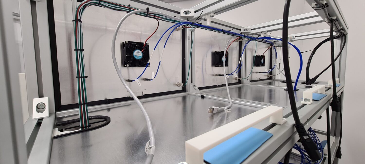 D’un point de vue RF et mécanique, il est impératif de s’assurer que les mini-chambres soient correctement isolées au niveau des rayonnements electromagnetiques, tant entre elles qu’avec l’environnement externe. En outre, nous devons gérer les conditions opérationnelles, telles que la température et l’humidité, le tout en respectant les exigences de décharges électrostatiques (ESD) pour éviter toute détérioration des échantillons.